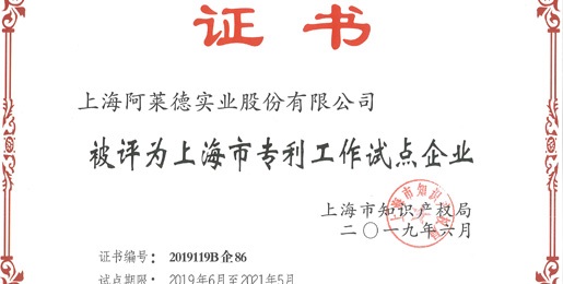 177 2019喜报:上海征途国际官网-追求健康,你我一起成长实业股份有限公司乐成审定为上海市专利事情试点企业